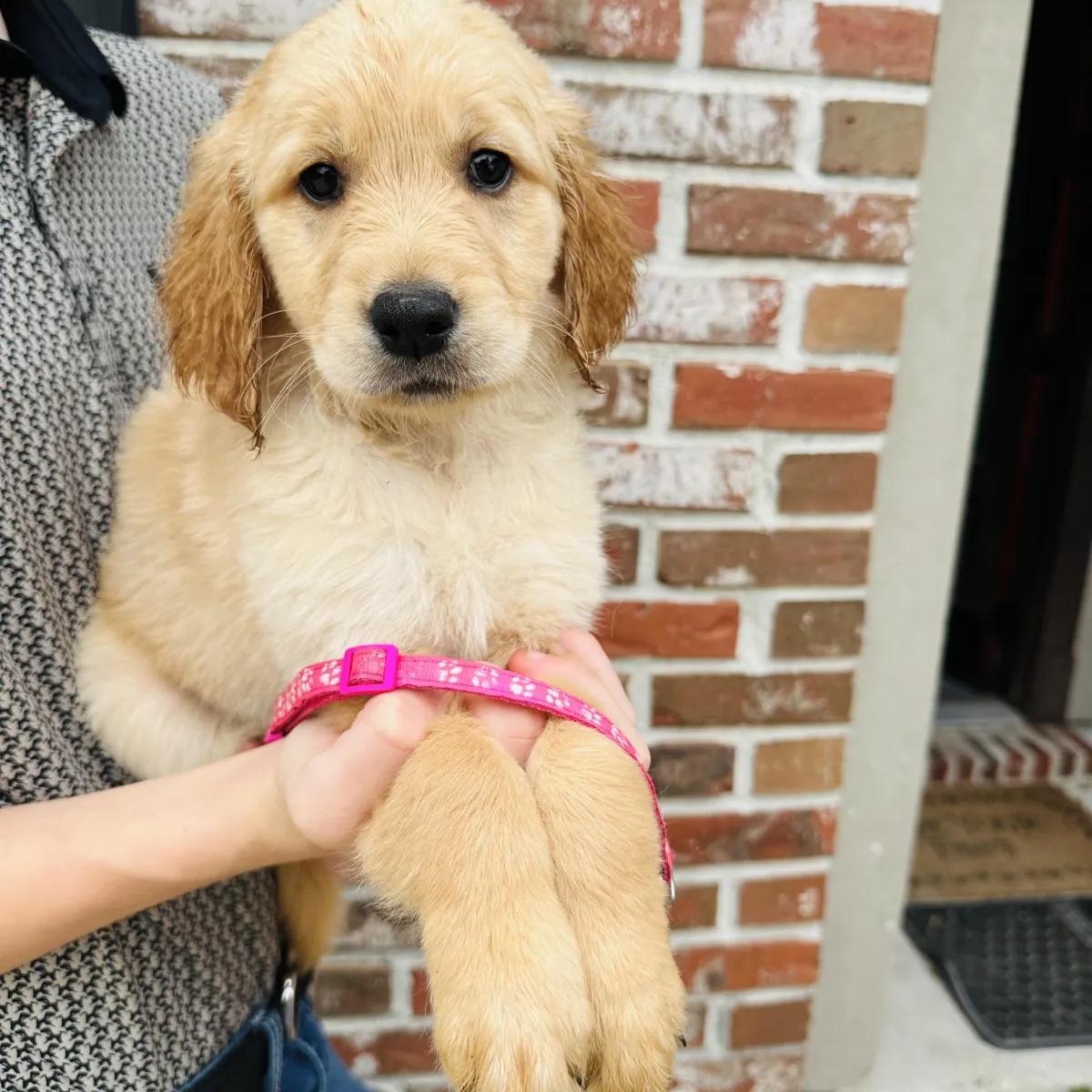 All puppies go home with a swag bag full of goodies that include an age appropriate harness, a seat belt for the vehicle, toy, blanket, and current food/kibble they are eating.